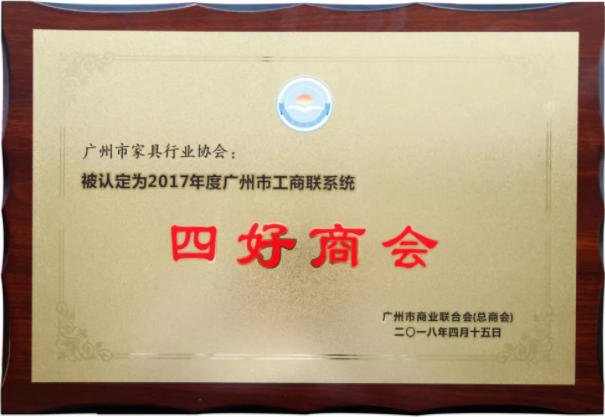 活動對榮獲2017年度廣州市工商聯(lián)系統(tǒng)“四好商會”的市、區(qū)兩級商協(xié)會進(jìn)行表彰,廣州市家具行業(yè)協(xié)會榮獲該項榮譽(yù)。近年來,協(xié)會積極創(chuàng)新,在服務(wù)會員、服務(wù)社會、規(guī)范管理等方面工作中,取得了一定的成績,得到上級有關(guān)部門及會員企業(yè)的肯定。